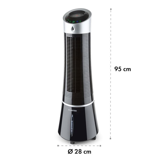 Чотирикратне освіження завдяки стильній вентиляційній вежі: повітроохолоджувач Klarstein Skyscraper Ice 4-в-1 забезпечує вас прохолодним бризом із надзвичайною точністю. Як вентилятор, охолоджувач повітря, очищувач і зволожувач повітря.