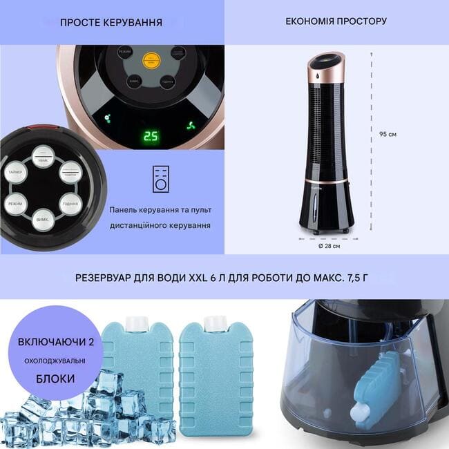 Повітроохолоджувач Skyscraper Ice 4-в-1 210 м³/год 30 Вт осциляційний мобільний пульт дистанційного керування
