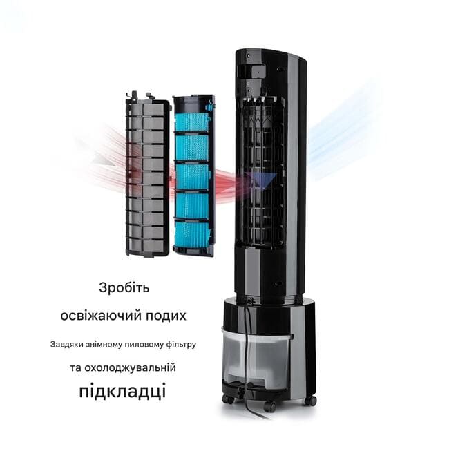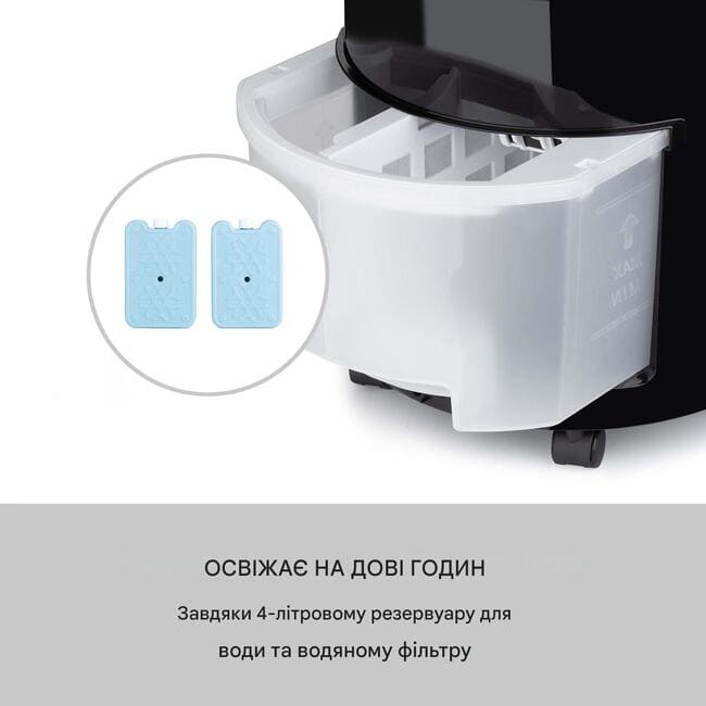 - Освіження впродовж декількох годин: завдяки резервуару для води на 4 літри та фільтру для води