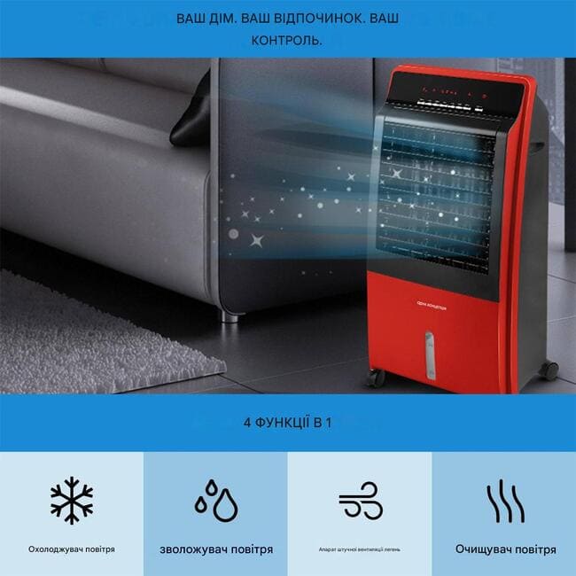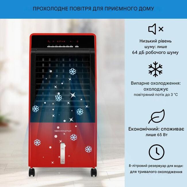 Повітроохолоджувач oneConcept CTR-1 4-в-1 повністю мобільний завдяки чотирьом базовим колесам і може легко супроводжувати вас у будь-яке місце, адже ви завжди хочете, щоб прохолодний вітерець був поруч з вами. Його низьке енергоспоживання всього 65 Вт і чисто фізичний принцип охолодження роблять його не тільки економічним, але й екологічним.