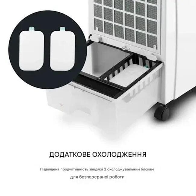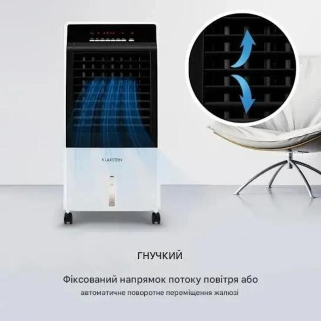Бажаєте прохолодного вітерця? Не біда, вентилятор oneConcept CTR-1 забезпечує свіжий вітер на трьох швидкостях і переміщує до 360 м³ повітря на годину. Якщо тепер увімкнути функцію охолодження повітря , повітря від вентилятора також трохи охолоджується за рахунок випаровування води з 7-літрового резервуару пристрою та освіжає вас під час роботи за столом, відпочинку на дивані або приготування їжі на кухні. Ви можете використовувати два пакети з льодом, які входять у комплект, щоб ще більше посилити цей ефект. І навіть взимку або в жарких сухих місцях зволожувач повітря oneConcept CTR-1 допомагає , зволожуючи повітряний потік і таким чином полегшуючи проблемні сухі слизові оболонки. Якщо цього недостатньо, скористайтеся вбудованим іонізатором, який перетворює CTR-1 на практичний очищувач повітря. Іони, що вивільняються, зв’язують не лише запахи, а й частинки пилу чи пилку та дозволяють їм виникати з повітря. Повітроохолоджувач поставляється з практичним пультом дистанційного керування для легкого та зручного керування всіма функціями.