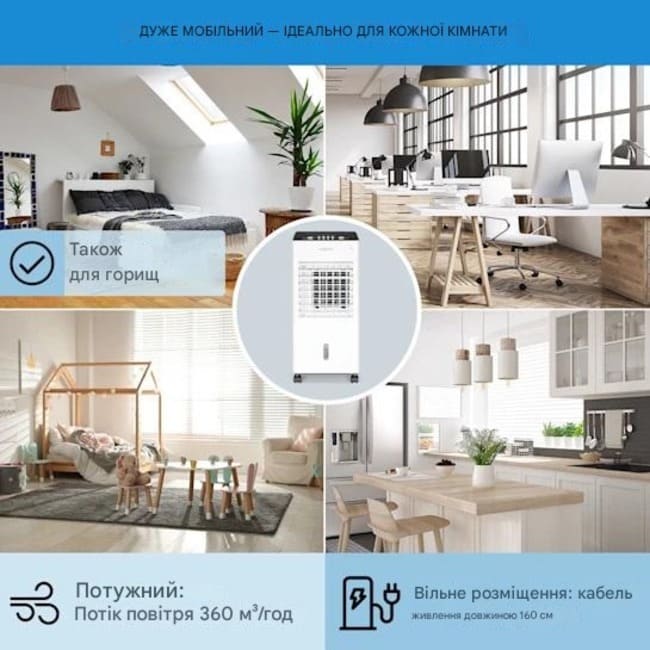 Повітроохолоджувач Freshboxx 3 в 1 65 Вт 360 м³/год 6 літрів 2 пакети льоду мобільний
