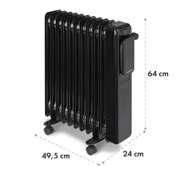 10 нагрівальних ребер не тільки забезпечують дуже велику поверхню нагріву, але й дозволяють особливо швидко нагрівати повітря у приміщенні завдяки значно кращій циркуляції повітря. Вбудована функція захисту від замерзання активується автоматично, коли температура знижується нижче 5 °C. Завдяки 24-годинному таймеру увімкнення та вимкнення ви можете спати спокійно.