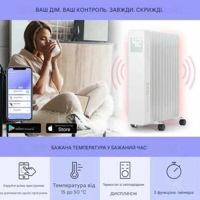 Масляний радіатор Sanford Smart потужністю 2500 Вт.