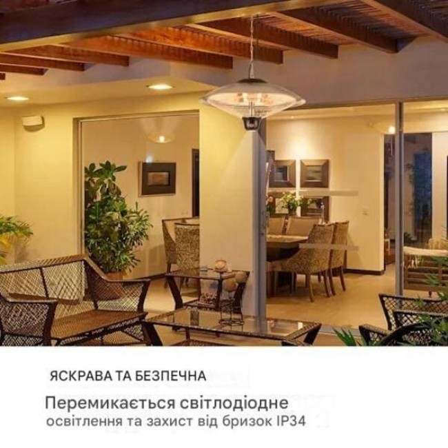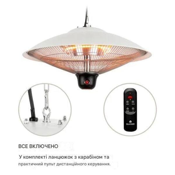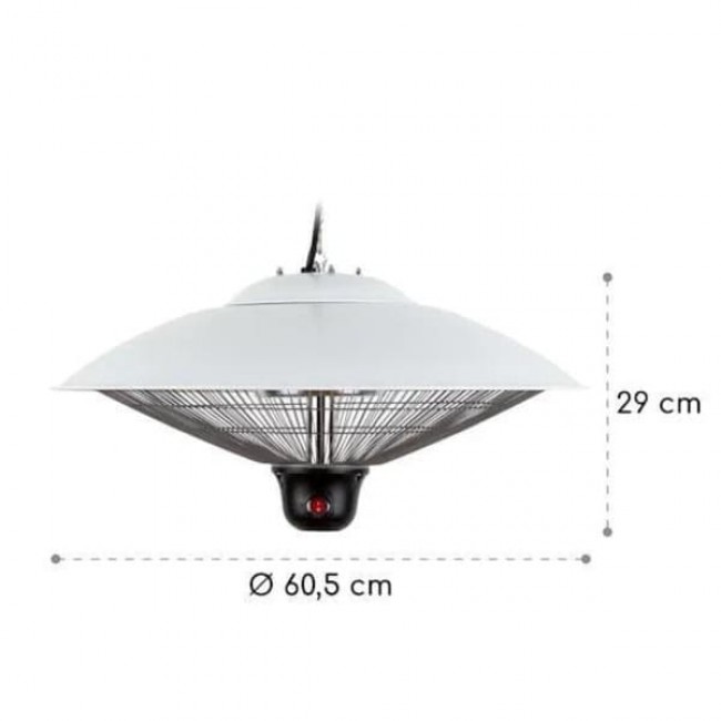 З інфрачервоним обігрівачем Heizsporn від Blumfeld ви значно довше зможете проводити веселі зустрічі в будь-який час року, будь то затишні вечори на терасі або в саду. Інфрачервоний обігрівач пропонує потужне джерело тепла та світла для внутрішнього та зовнішнього використання навіть у холодні дні. Крім того, світильник стель також може бути оптимально встановлений над пеленальним столиком, щоб дати вашій дитині приємне тепло. Екологічно чистий та енергоефективний. Два потужні вуглецеві нагрівальні елементи працюють у три етапи з потужністю 700 Вт, 1300 Вт або 2000 Вт, що дозволяє йому охоплювати поверхні площею до 9 м² у комфортному теплі. На відміну від звичайних тепловентиляторів, інфрачервоне випромінювання не тільки нагріває навколишнє повітря, але й цілеспрямовано передає тепло освітлюваним людям та об'єктам, тому приємні температури встановлюються негайно. Крім того, м'яке червоне світло для додаткового затишку. Інфрачервоний обігрівач Blumfeldt Heizsporn може бути легко встановлений на стелі, навісах або на даху патіо. Міцний ланцюг із нержавіючої сталі з практичним карабіном вже включений, тому потрібен лише відповідний гак або скоба. Підвісний світильник має клас захисту IP34 і тому захищений від бризок води з усіх боків та проникнення сторонніх предметів діаметром понад 2,5 см. Останнє забезпечується захисною сіткою, яка також захищає від випадкового контакту. Таким чином, інфрачервоний обігрівач Blumfeldt Heizsporn також підходить для тварин у стайнях, наприклад, в інкубаторі. Його зігріваючий сервіс також визначає його для використання в павільйонах, садових навісах, під навісами або наметами.