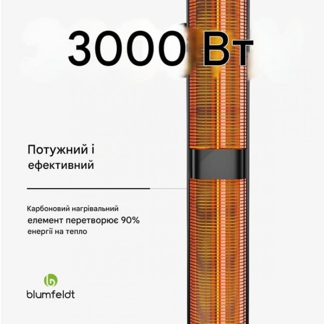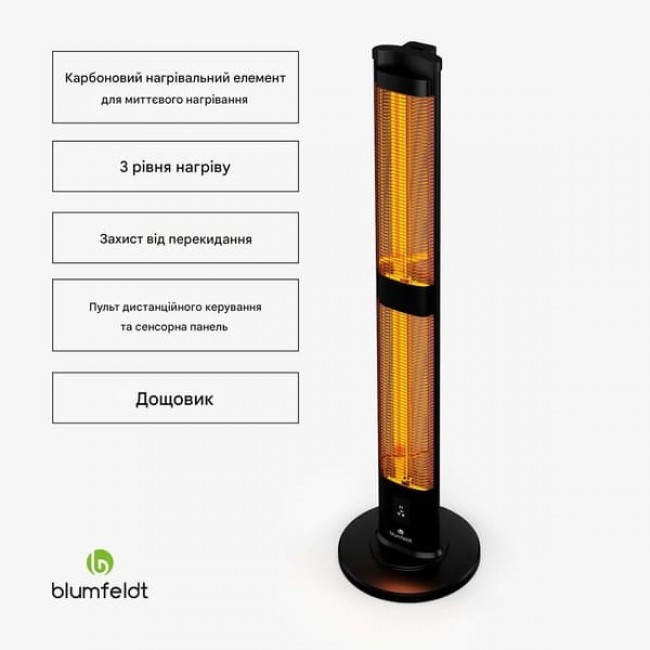 Окремо стоячий обігрівач Blumfeldt BlazeTower був спеціально розроблений, щоб перетворити ваші зовнішні майданчики на затишні оазиси благополуччя навіть у холодні вечори. З вражаючою потужністю 3000 Вт і вдосконаленим карбоновим нагрівальним елементом цей окремо стоячий інфрачервоний обігрівач забезпечує миттєве рівномірне тепло саме там, де вам це потрібно. На балконі, терасі чи в саду – автономний обігрівач BlazeTower гарантує, що ви зможете приємно провести час на відкритому повітрі навіть у прохолодну погоду.