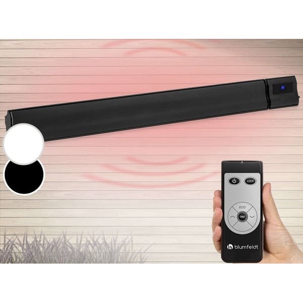 Легкий електрообігрівач Blumfeldt Cosmic Beam Plus просто монтується на стіну або стелю. Це означає, що він не заважає, хоча швидко й ефективно випромінює довгохвильове інфрачервоне світло з потужністю 2400 Вт. Технологія IR ComfortHeat використовує принцип сонячного тепла. Освітлені об'єкти та люди спеціально обігріваються без необхідності обходу за допомогою повітряного опалення. Завдяки своїй конструкції Cosmic Beam Plus відноситься до групи темних випромінювачів . Він випромінює лише тепло, а не світло. Крім того, він працює абсолютно безшумно і не збиває пилу - ідеальні умови для чутливих до шуму місць і алергіків.