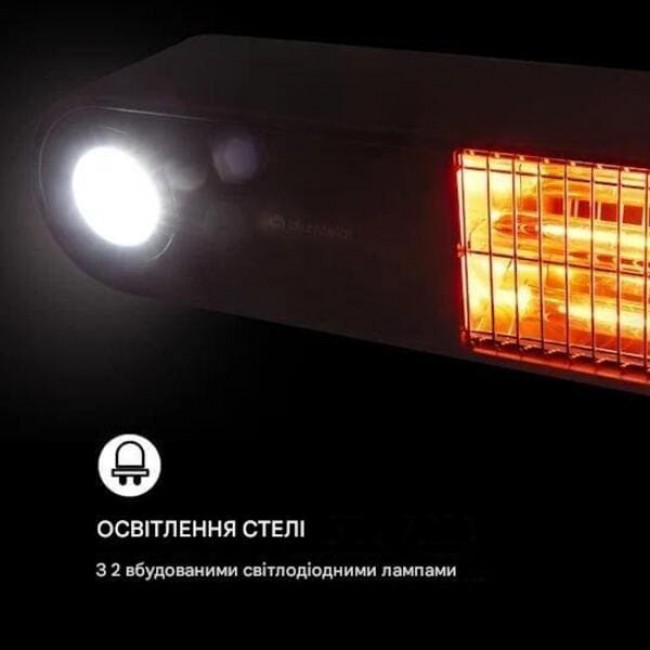 Тож можна планувати вечерю, вечірку в саду чи гаражі, не турбуючись про температуру. Позолочена інфрачервона трубка також зменшує світловий ефект радіаційного обігрівача до мінімуму, так що кожен може насолоджуватися теплою зоною, не будучи засліпленим. Завдяки захисту IP55 пристрій також ідеально підходить для зовнішнього використання та захищений від пилу та струменів води.