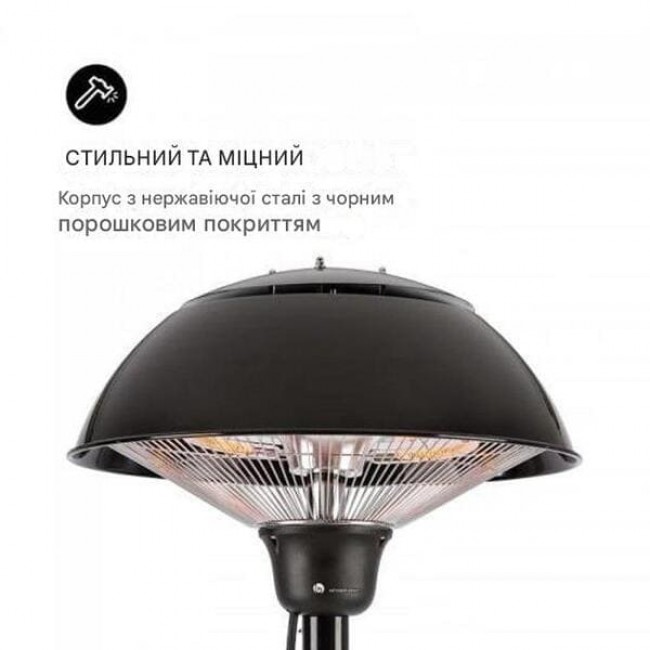 Blumfeldt Heat Guard Blackline - обігрівач для балкона, тераси чи двору. Коли температура знижується, ви можете просто ввімкнути обігрівач, потягнувши за шнур і вибрати бажаний рівень нагрівання. Завдяки технології IR ComfortHeat тепло віддається саме людям, що знаходяться поруч із обігрівачем, а не навколишньому повітру. Ви можете вибрати один із двох рівнів нагріву - 750 або 1500 Вт. Плануєте вечерю на балконі або вечірку в гаражі, не переймаючись температурою: відразу після включення інфрачервоний обігрівач створює приємне, затишне та безпечне тепло без тривалого прогріву. Надійно виготовлений із нержавіючої сталі променистий обігрівач Blumfeldt Heat Guard Blackline не тільки стабільний, але і є справжньою візуальною родзинкою. Подовжувальна трубка дозволяє регулювати висоту на 50 см.