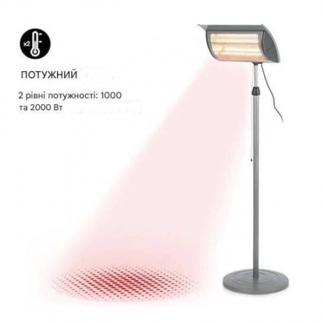 Променевий обігрівач blumfeldt Heat Guard Focus можна гнучко встановити будь-де, при цьому він швидко та ефективно зігріває вас і ваших гостей потужністю до 2000 Вт. Завдяки технології IR ComfortHeat тепло виділяється саме на людей, які знаходяться поруч з обігрівачем, а не на повітря навколо. Одним або кількома потягуваннями за шнур ви можете вибрати один або два нагрівальні елементи та різні рівні нагріву, 1000 або 2000 Вт, за лічені секунди та легко задовольнити потреби ваших гостей. Плануйте вечері на балконі або вечірки в гаражі, не турбуючись про температуру, тому що відразу після ввімкнення інфрачервоний обігрівач створює приємне, домашнє та безпечне тепло без тривалої фази прогріву.