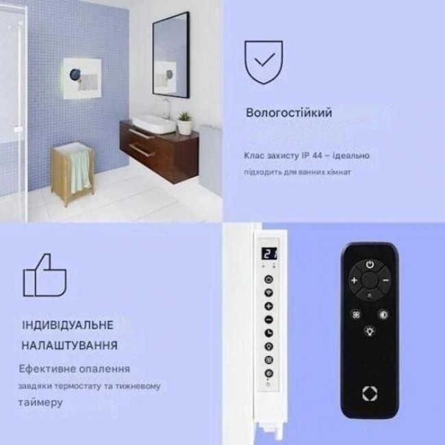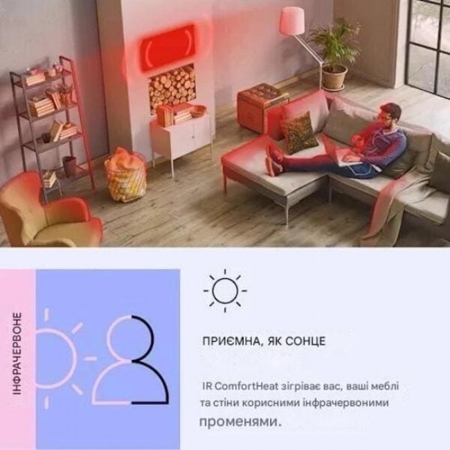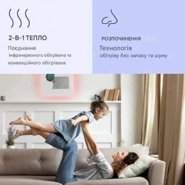 - Режим роботи: теплове випромінювання (інфрачервоний обігрівач) / конвекція