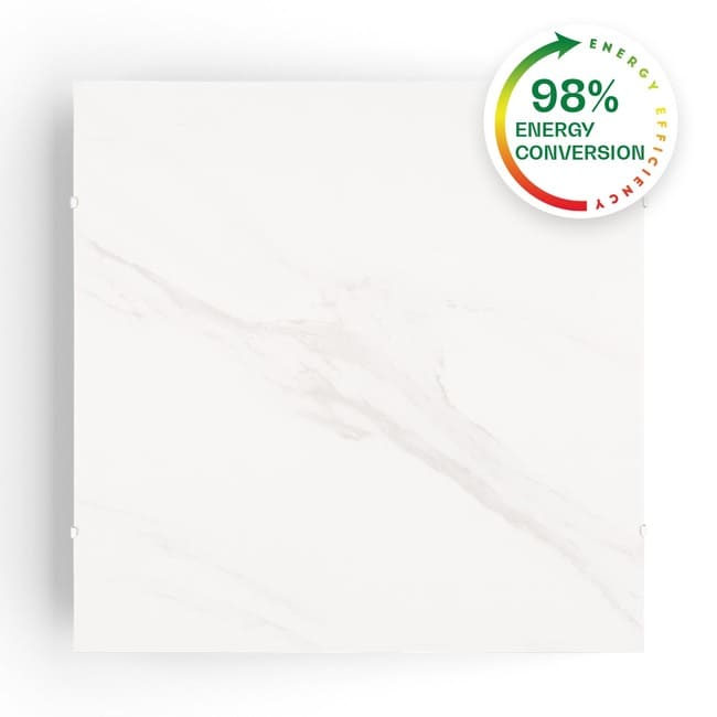 Технологія IR ComfortHeat спрямовує тепло саме в зону перебування людини, зменшуючи теплові втрати та підвищуючи енергоефективність. Мармурова поверхня акумулює тепло та продовжує віддавати його навіть після вимкнення приладу.
