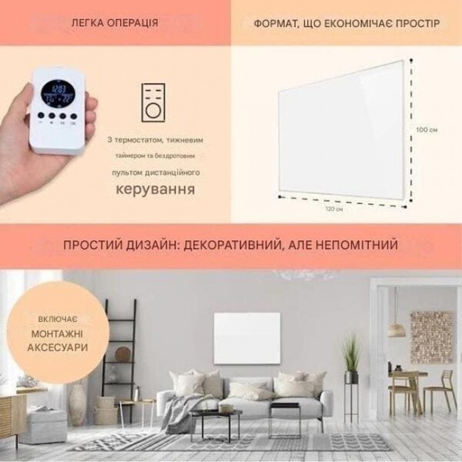 Інфрачервоний обігрівач Wonderwall Air 120 120x100см 1200W настінний пульт дистанційного керування