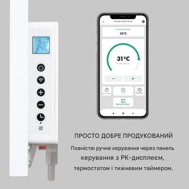 Інфрачервоний обігрівач Klarstein Wonderwall Air Art Smart поєднує в собі високоефективний нагрів із привабливим дизайном та інноваційними технологіями. Нагрівальна панель розміром 120 х 60 см може бути повісена прямо на стіну, і її розміри трохи перевищують картину в рамці. Завдяки своїй потужній потужності 700 Вт і завдяки інфрачервоному обігріву ComfortHeat він поширює дуже приємне тепло на шкіру людини, не втрачаючи його в повітрі. Завдяки інфрачервоній технології нагрівальна панель надзвичайно енергоефективна та екологічно чиста: 98% енергії перетворюється на теплове випромінювання. Інтелектуальні функції для керування через додаток, термостат, функція автоматичного відключення та клас захисту IP44 вміло завершують інновацію.