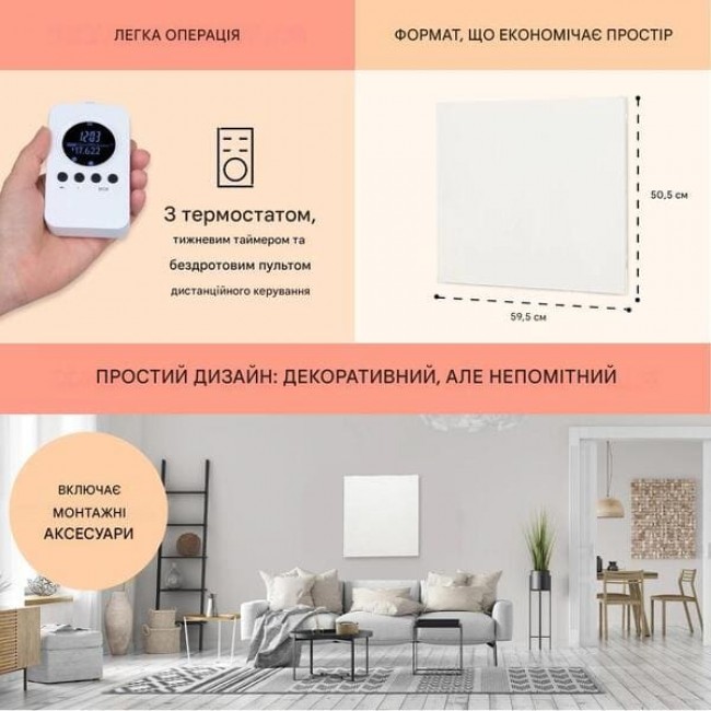 - Можна комбінувати з іншими панелями для опалення великих приміщень