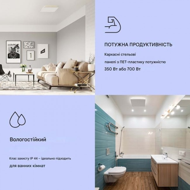 - ідеально підходить для вологих приміщень, таких як ванні кімнати