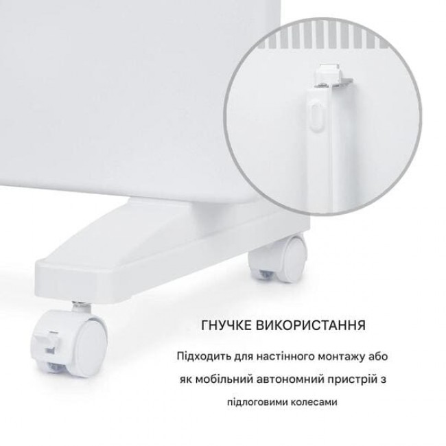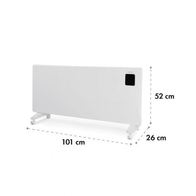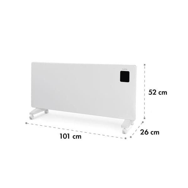 Завдяки потужності 2500 Вт обігрівач Klarstein Bansin Smart 2500 забезпечує тепло в приміщеннях площею до 50 м². Вбудований термостат у поєднанні з датчиком кімнатної температури забезпечує температуру від 5 до 50 °C. Таймери і тижневі таймери забезпечують роботу з точністю до хвилин і вмикають і вимикають конвектор відповідно до зроблених налаштувань. Скляна та металева панель Klarstein Bansin Smart 2500 захищена від бризок за стандартом IP24 і тому також підходить для використання на кухні та у ванній кімнаті. Його використання також є гнучким: з одного боку, його можна стаціонарно встановити на стіні, а також використовувати як мобільний автономний пристрій з підлоговими роликами.