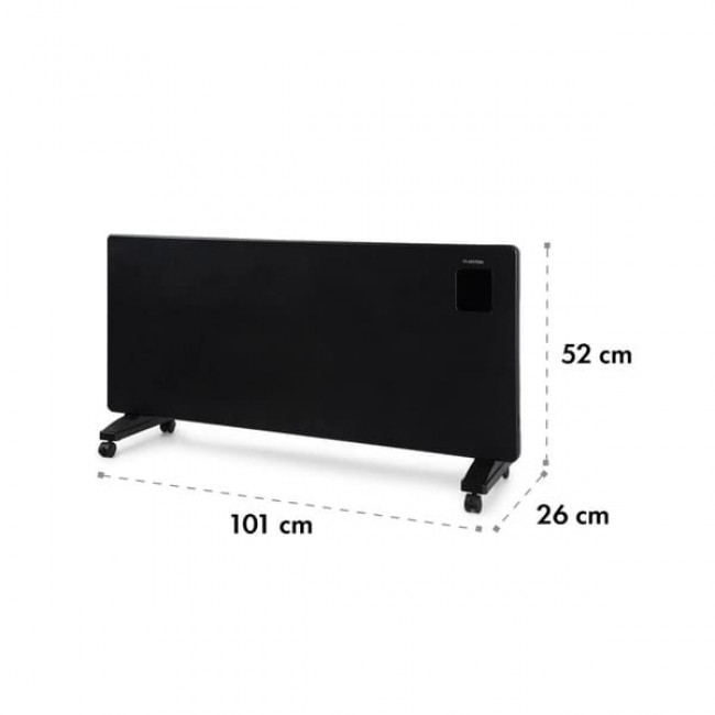 Завдяки потужності 2500 Вт обігрівач Klarstein Bansin Smart 2500 забезпечує тепло в приміщеннях площею до 50 м². Вбудований термостат у поєднанні з датчиком кімнатної температури забезпечує температуру від 5 до 50 °C. Таймери і тижневі таймери забезпечують роботу з точністю до хвилин і вмикають і вимикають конвектор відповідно до зроблених налаштувань. Скляна та металева панель Klarstein Bansin Smart 2500 захищена від бризок за стандартом IP24 і тому також підходить для використання на кухні та у ванній кімнаті. Його використання також є гнучким: з одного боку, його можна стаціонарно встановити на стіні, а також використовувати як мобільний автономний пристрій з підлоговими роликами.