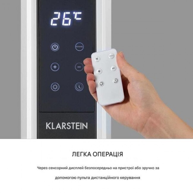 Потужність електричного обігрівача можна зручно регулювати в три ступені до 800, 1200 або 2000 Вт і таким чином ідеально відповідає вашим потребам, від швидкого нагріву до економічного підтримання тепла. Вбудований термостат можна встановити на температуру від 7 до 35 °C на будь-якому рівні. Тепле повітря піднімається над пристроєм і таким чином забезпечує циркуляцію тепла по всьому приміщенню. Безшумна робота та доступний таймер роблять конвекторний обігрівач Klarstein Baltrum ідеальним обігрівачем у вітальні, спальні чи кабінеті, який автоматично вимикається після завершення роботи. Управління просте і нескладне за допомогою дистанційного керування або безпосередньо на пристрої.
