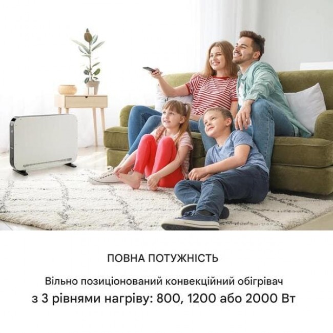 Повна потужність: вільно розміщуваний конвекційний обігрівач з 3 рівнями нагріву на 800, 1200 або 2000 Вт