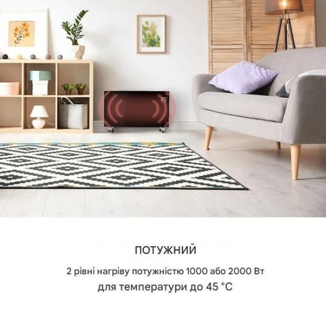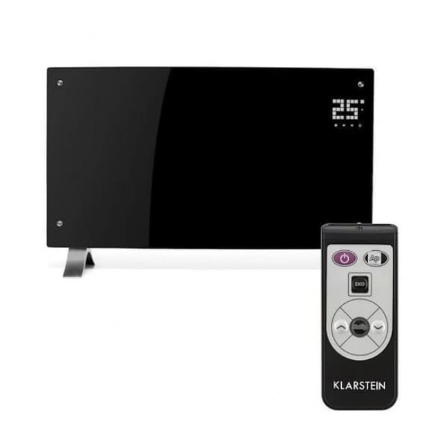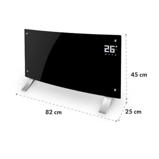 Конвекційний обігрівач Klarstein Bornholm Curved розподіляє приємне тепле повітря в приміщеннях площею до 40 м 2 . Обігрівач Klarstein потужністю 1000 або 2000 Вт нагріває приміщення до 45 °C за допомогою двох рівнів нагріву. За допомогою термостата можна ідеально встановити будь-яку бажану температуру. Режим ECO мінімізує споживання енергії екологічно чистим і економним способом, а завдяки функції таймера ви можете ідеально запрограмувати роботу опалення. Крім того, опукла скляна панель KlarsteinBornholm Curved захищений від бризок, що робить його ідеальним для розміщення у вологих приміщеннях. Вигнута форма надає Bornholm Curved особливо елегантний зовнішній вигляд і в той же час покращує розподіл тепла в кімнаті.