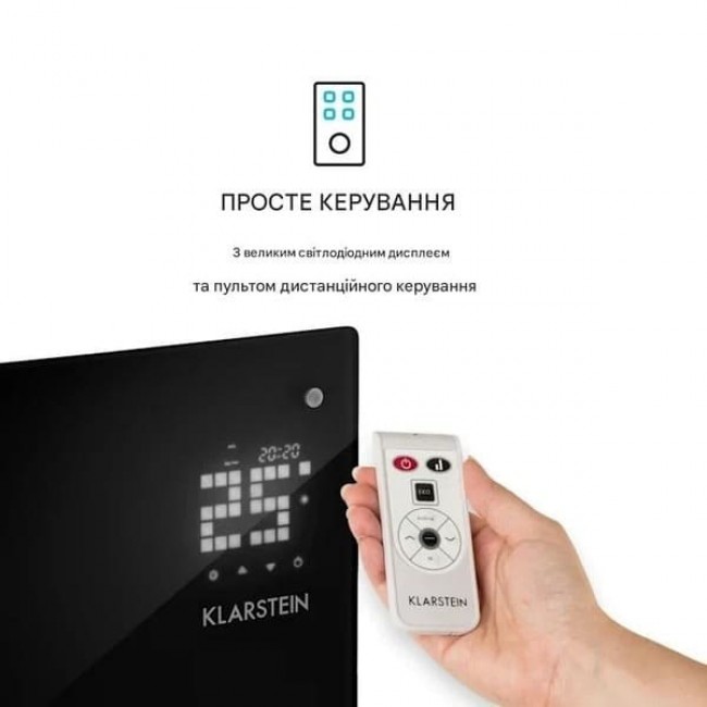 Конвекційний обігрівач Klarstein Bornholm Curved Ambient забезпечує рівномірне нагрівання до 45 °C у приміщеннях з максимальною площею 40 м 2 . Завдяки двом рівням нагріву 1000 або 2000 Вт потужний обігрівач швидко та надійно зігріє будь-яке приміщення. Бажана температура завжди підтримується з точністю до градуса за допомогою термостата. Режим ECO знижує споживання енергії до мінімуму: це захищає навколишнє середовище та ваш гаманець. Завдяки захисту від бризок води ви можете налаштувати якісний обігрівач навіть у вологих приміщеннях, запрограмувати його з точністю до хвилин за допомогою функції таймера або зручно керувати ним за допомогою пульта дистанційного керування.