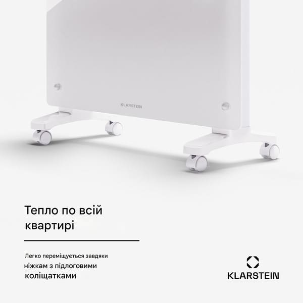Обігрівач Klarstein Bornholm Smart забезпечує надійне тепло. Завдяки підлоговим коліщаткам ви можете легко перемістити його в будь-яку кімнату та легко ним керувати !