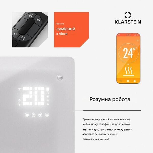 • Просто зручно: керуйте за допомогою програми Klarstein, повністю сумісної з Alexa, або за допомогою дистанційного керування