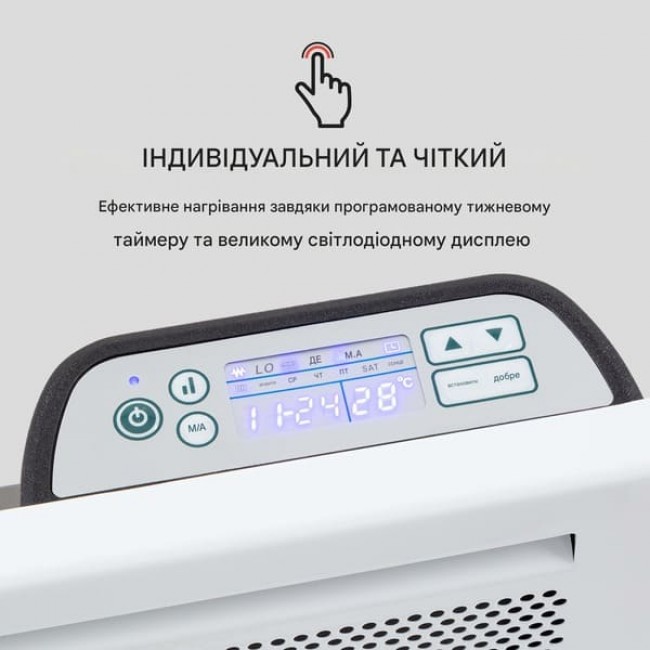 Індивідуально та чітко: ефективне опалення завдяки програмованому тижневому таймеру та великому світлодіодному дисплею