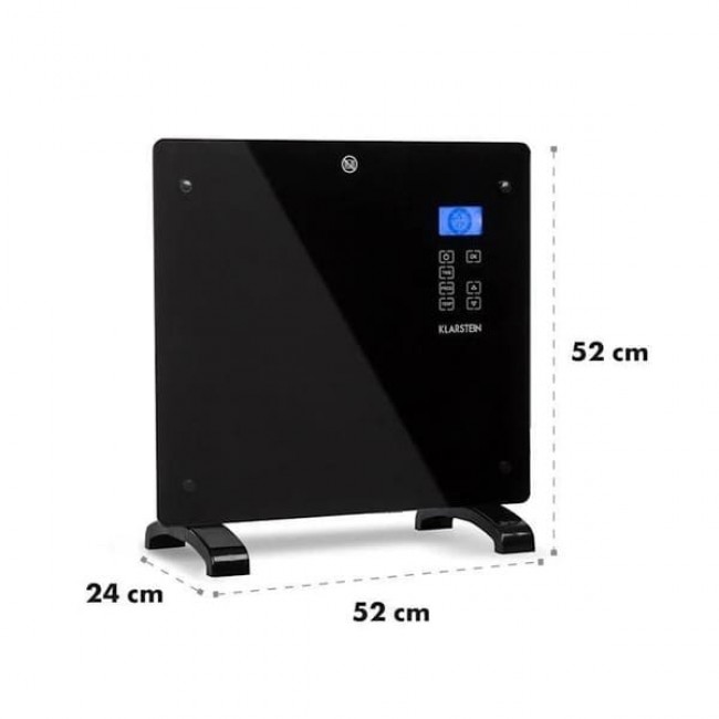 Обігрівач Klarstein Norderney потужністю 1000 Вт нагріває приміщення до температури від 15 до 35 °C за бажанням за допомогою двох рівнів нагріву. Нагрівальний елемент з нержавіючої сталі має багато переваг: він характеризується швидким нагріванням і, перш за все, без запаху, а також тривалим терміном служби. Завдяки датчику температури термостат завжди підтримує потрібну температуру з точністю до градуса. Детектор морозу захищає приміщення від переохолодження та пошкодження морозом, запобігаючи падінню температури нижче 5 °C. Наче цього недостатньо, датчик визначає, чи відкриті вікна, і вимикає пристрій. Захист від перегріву та особливо енергозберігаючий режим Eco також включені в спектр функцій. Використовуючи режим таймінгу, конвекційний обігрівач не тільки вмикається і вимикається з точністю до хвилини відповідно до зроблених налаштувань - його можна запрограмувати на весь тиждень. Завдяки захисту від бризок води відповідно до IP24, Norderney також можна встановлювати у вологих приміщеннях, таких як кухня або ванна кімната. Встановлення також є гнучким і може використовуватися як окремо стоячий, так і як настінний пристрій - відповідний монтажний матеріал і ніжки включені в комплект поставки.