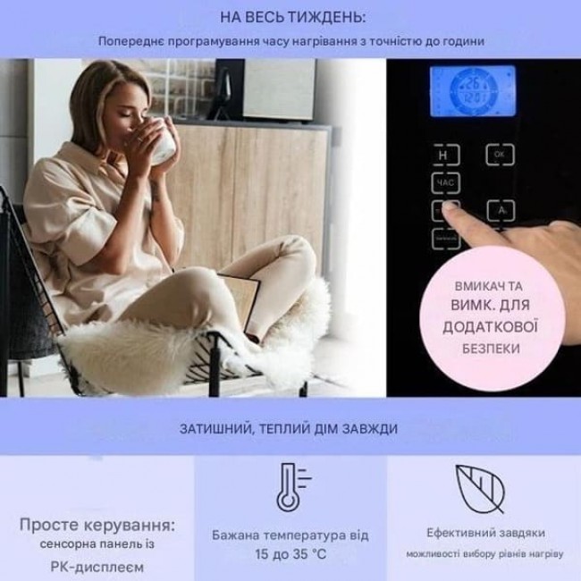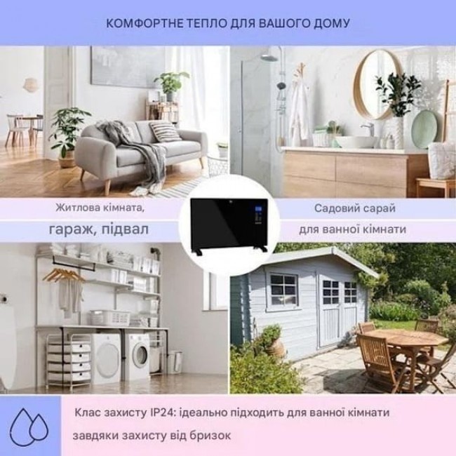 Заспокійливе тепло: вихідна потужність 2000 Вт для температур від 15 до 35 °C у приміщеннях площею до 30 м²