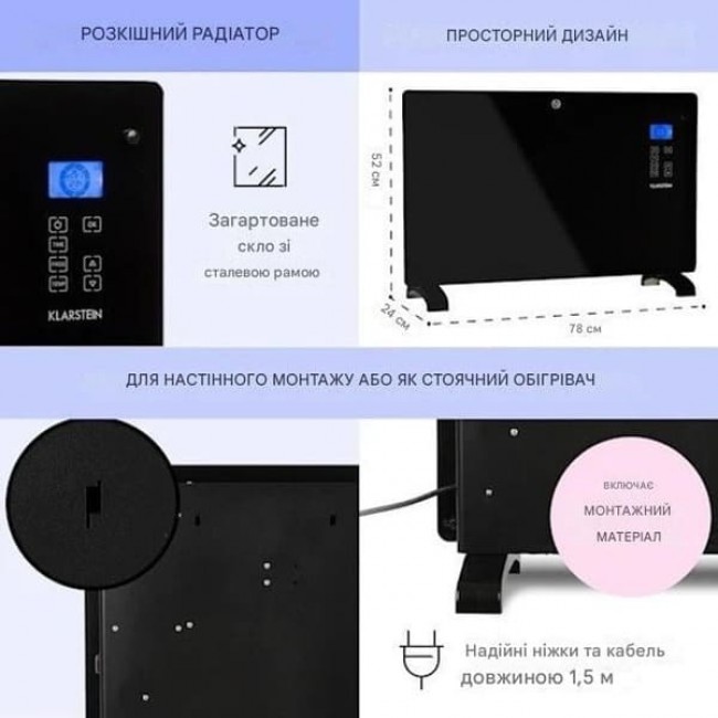 Чорна елегантність викликає приємні відчуття та затишне тепло для тих, хто носить туфлі та піжами: конвекційний обігрівач Klarstein Norderney забезпечує рівномірне підвищення температури та розподіл нагрітого повітря в приміщеннях розміром до 30 м² / 70 м³.