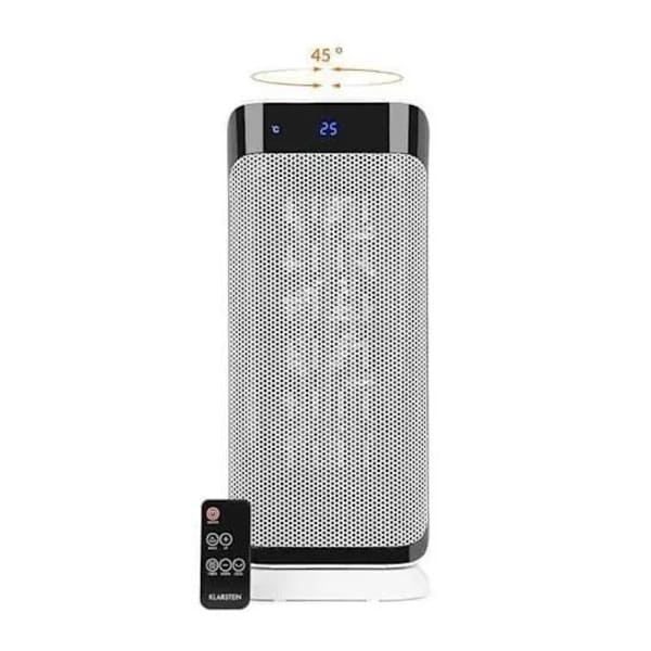 Потужна теплова вежа Klarstein Chaval Завжди зігріває в холодні дні і ночі. Маючи потужністю 1000 або 2000 Вт на 2 рівнях потужності, він працює згідно з індивідуальними потребами у теплі: вбудований термостат налаштовується за допомогою неступенцевого регулятора температури і забезпечує інтелектуальне управління пристроєм. Як тільки досягаєш бажаної температури, Променистий обігрівач включає в себе сам.вимикається і поновлює роботу, коли температура знову падає нижче потрібного рівня. Це заощадить гроші, з одного боку, і запобігає перегріванню з іншого. На додаток до термостату, маленький Chaval має автоматично вимкнути таймер. Перемикання поворотного руху сприяє швидкому поширенню тепла. Всі елементи керування компактними градусами знаходяться на практичному пульті дистанційного керування, що забезпечує зручність і зручність.
