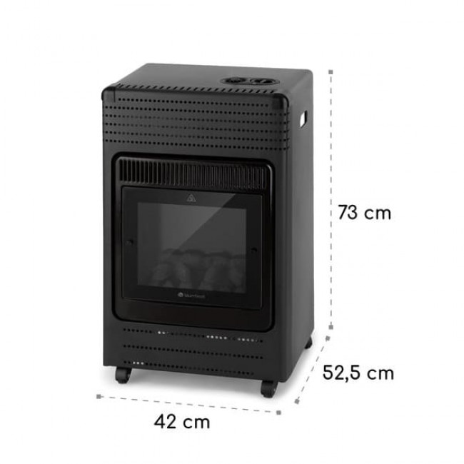 З газовим обігрівачем blumfeldt Andora Flame затишне тепло швидко й легко приходить до всіх місць, де немає власного постійного опалення чи підключення до електроенергії. Газовий обігрівач blumfeldt Andora Flame обігріває охолоджені сади та майстерні. Балони з пропаном або бутаном вагою до 11 кг можна зберігати всередині корпусу та миттєво підключати завдяки шлангу та регулятору тиску, що входять у комплект. Паливний елемент запалюється за допомогою електричної п'єзосистеми. Завдяки двом налаштуванням нагріву (потужність 2000 або 3400 Вт) він забезпечує високу ефективність для швидкого нагріву. Завдяки мерехтливому вогню Andora Flame створює відтінок атмосфери камінної кімнати. Система O2Guard забезпечує необхідну безпеку: вона вимірює кількість вуглекислого газу в повітрі приміщення та автоматично вимикає газовий нагрівач, якщо він занадто високий. Бічні ручки та чотири підлогові коліщатка дозволяють легко пересуватися, тож тепло потрапляє саме туди, куди потрібно. Чорний лакований корпус із листової сталі захищає пристрій і надає газовій плиті blumfeldt Andora Flame стильний вигляд. Затишне тепло навіть у найсильнішу зиму: газовий обігрівач blumfeldt Andora Flame добре нагрівається в холодні дні!
