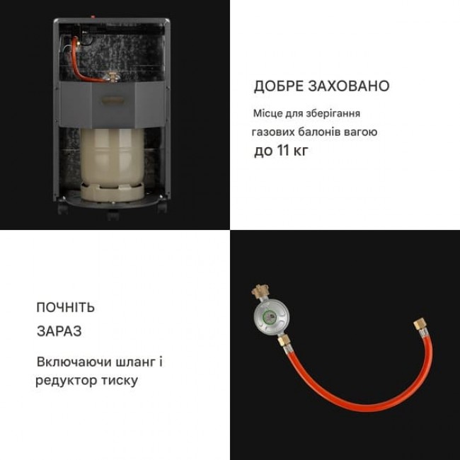 Просто й безпечно: легко запалити за допомогою п'єзорозпалювача та системи O2Guard — автоматично вимикається, якщо вміст CO2 у повітрі занадто високий
