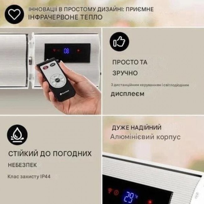 - Технологія IR Comfort Heat : цілеспрямована передача тепла людям і предметам, а не навколишньому середовищу