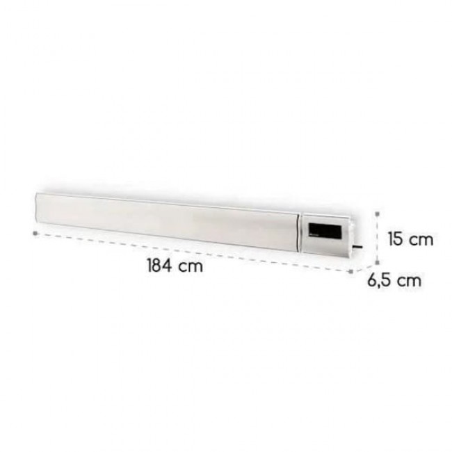 Практичний пульт дистанційного керування не тільки зручно вмикає та вимикає, але також дозволяє встановити бажану температуру навколишнього середовища з точністю до градуса від 5 до 45 °C, а також практичний таймер вимкнення. Електричний обігрівач blumfeldt Cosmic Beam Plus XXL дає змогу планувати вечері та вечірки в гаражі, не турбуючись про температуру . Завдяки подовженому нагрівальному елементу 165 см він нагріває всю довжину столу. Міцний корпус із литого під тиском алюмінію з порошковим покриттям стійкий до атмосферних впливів за стандартом IP44.