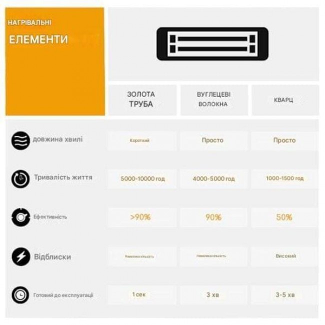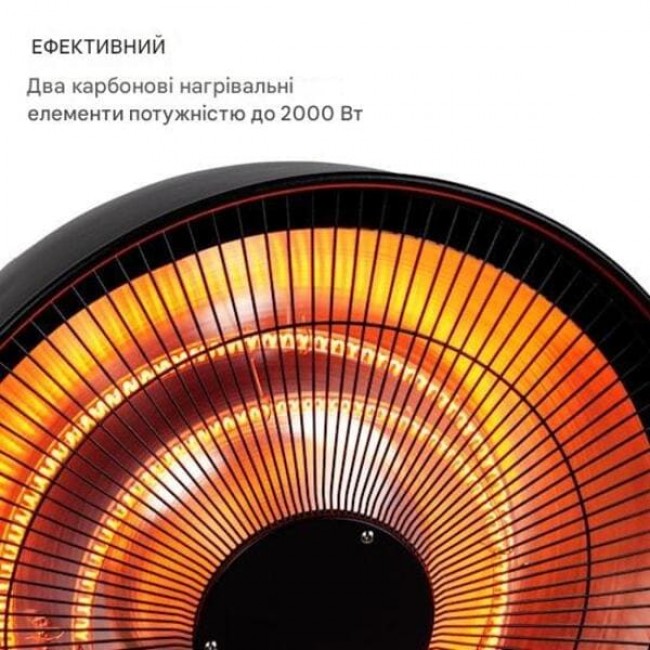 - Ефективність: два карбонових нагрівальні елементи потужністю до 2000 Вт