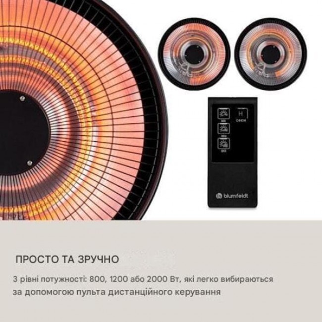 - Простий і зручний: 3 рівні потужності 800, 1200 або 2000 Вт можна легко вибрати за допомогою дистанційного керування