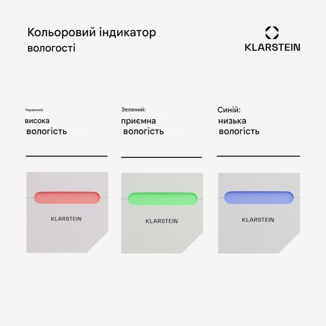 - кольоровий світлодіодний індикатор сухого, нормального та вологого повітря