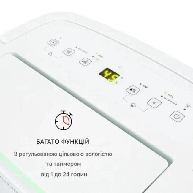 - Регульована цільова вологість повітря з кроком 5% від 30 до 80 відсотків