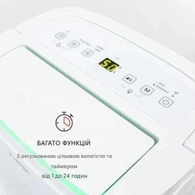- Багато функцій: регульована цільова вологість і таймер від 1 до 24 годин