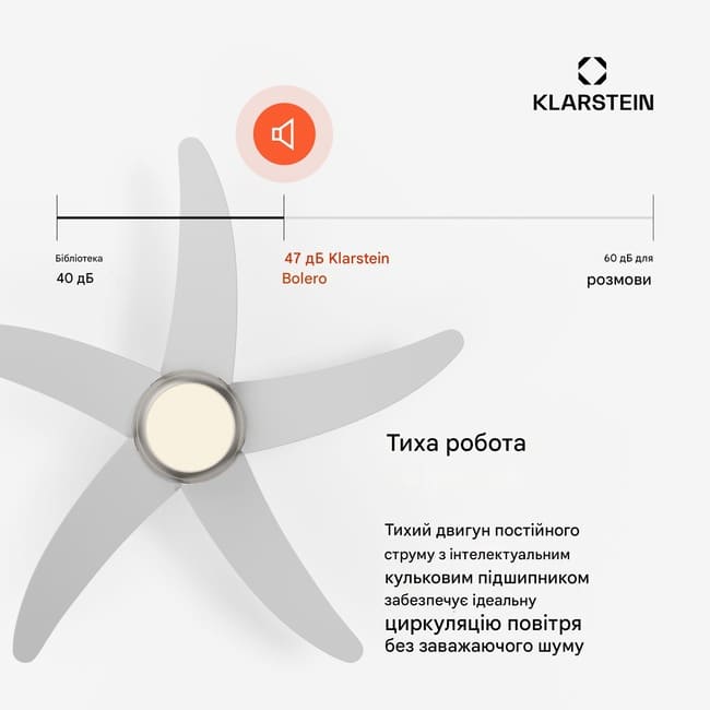 Спробуйте стельовий вентилятор Klarstein Bolero Smart - поєднання сучасного стилю та інтелектуальних технологій для комфортного клімату в приміщенні протягом усього року.