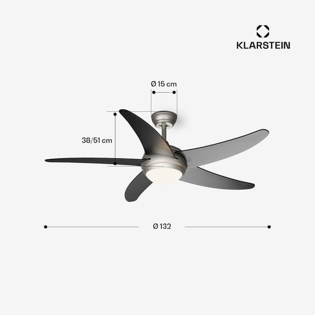 Відчуйте симбіоз сучасного дизайну та інноваційних технологій із стельовим вентилятором Klarstein Bolero Smart . Цей інтелектуальний вентилятор із вражаючим діапазоном 132 см не лише може забезпечити приємну циркуляцію повітря, але й об’єднує розумні функції для максимального контролю та комфорту.