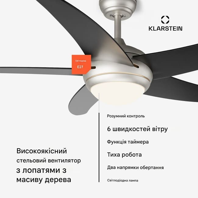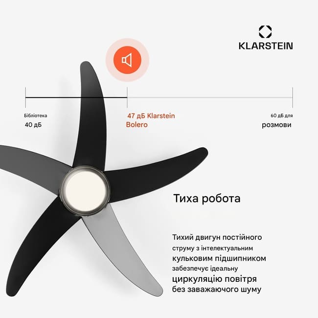 Спробуйте стельовий вентилятор Klarstein Bolero Smart - поєднання сучасного стилю та інтелектуальних технологій для комфортного клімату в приміщенні протягом усього року.