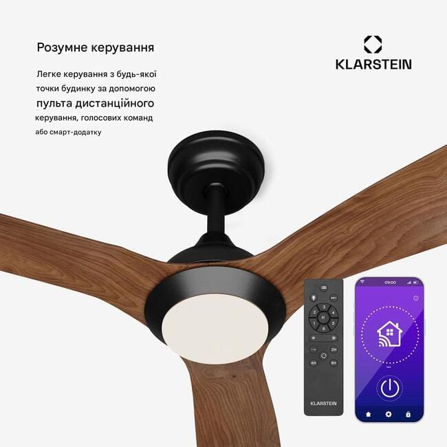 Інтелектуальні функції стельового вентилятора Klarstein Fiji Flow Smart дозволяють зручно керувати вентилятором з будь-якої точки дому – за допомогою пульта дистанційного керування (за допомогою настінного кронштейна), голосової команди або програми Smart App. Завдяки 6 швидкостям вітру та таймеру (1/3/8 годин) ви можете налаштувати налаштування та навіть активувати автоматичний режим сну.
