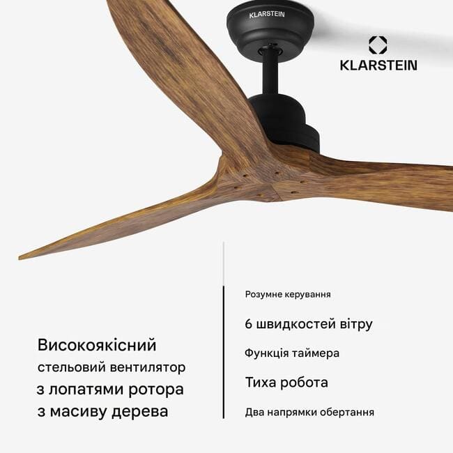 Завдяки шести режимам швидкості вентилятор пропонує широкий вибір повітряних потоків, які можна адаптувати до індивідуальних потреб. Особливо підходить для спалень, його надлегкі леза зі справжнього дерева в поєднанні з двигуном постійного струму забезпечують майже безшумне розгортання та розслаблюючу атмосферу.