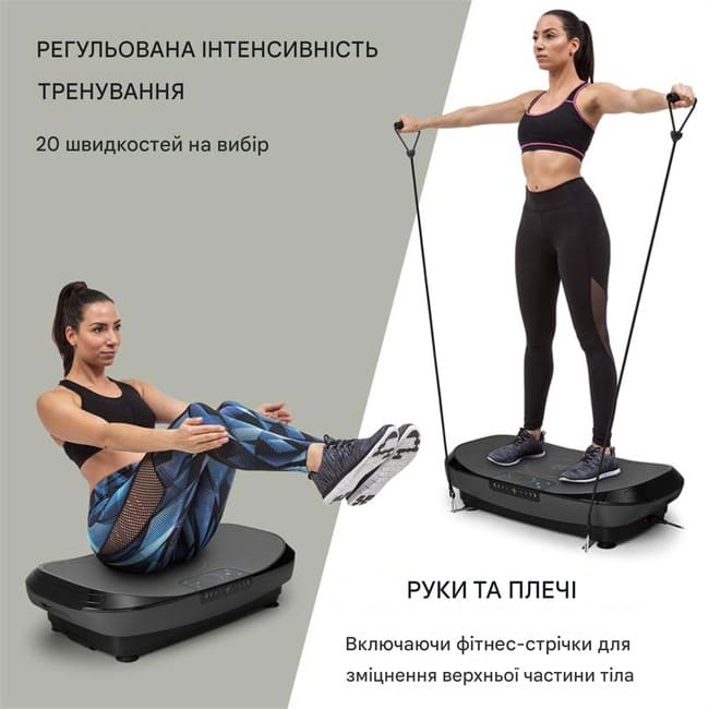 Вібротренування з 4 режимами руху, 20 швидкостями і 4 програмами активізує різні зони тіла, не навантажуючи зв'язки і суглоби. Зокрема, зміцнення м’язів спини та тазу сприяє формуванню вертикальної постави, а також підтримує правильний біг. Але ці вправи також ефективно впливають на незадіяні групи м’язів у глибині тіла. Однак вібраційна плита використовується не тільки для нарощування м’язів, але також ідеально підходить для підтягування шкіри та сполучної тканини, допомагає розщепити целюліт і зменшити жирові відкладення. Крім того, тренується кровообіг і підвищується загальна рухливість.