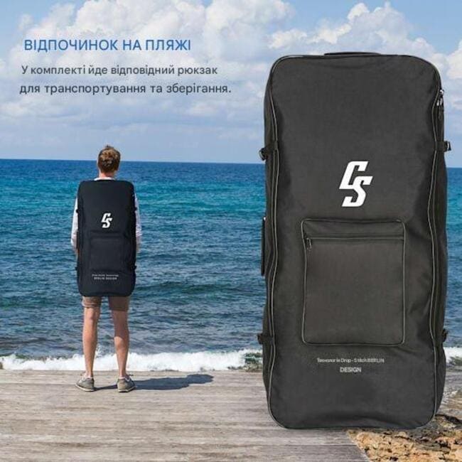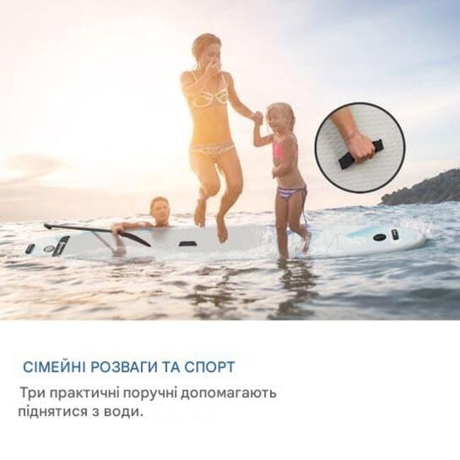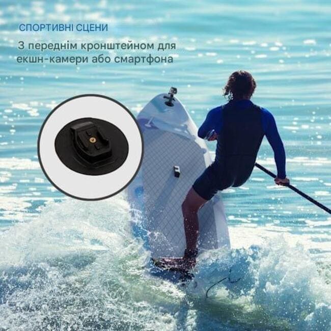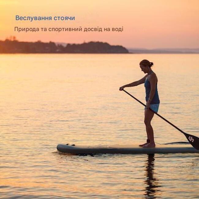 Завдяки крейсерській формі надувна SUP дошка підходить для початківців і просунутих гребців. Ремінь для ніг з повідцем і п'ять ручок на дошці можуть забезпечити безпеку. Це означає, що ваша дошка не втече від вас, навіть якщо ви перебуваєте у швидшій воді. Паддлборд швидкий, маневрений і дуже простий у використанні: ви можете легко транспортувати його на воду в відповідному рюкзаку та надути менш ніж за десять хвилин за допомогою супровідного двотактного повітряного насоса - і спортивні розваги можуть початися. Легке весло зі скловолокна, що регулюється за розміром, легко перетворюється на подвійне весло для байдарки: чудовий спосіб набути впевненості на дошці. Як телескопічне весло для SUP, ви можете відрегулювати його під свій зріст. Завдяки вантажним ременям ви навіть можете взяти з собою в подорож легкий багаж, наприклад провізію. Завдяки виготовленню з використанням надстабільної технології DropStitch SUP-дошку можна накачати до оптимального внутрішнього тиску 15 PSI. Це робить його надзвичайно стабільним і легким для балансування. Особливою родзинкою є кріплення для дії на носі дошки. Сюди можна надійно прикрутити тримачі для смартфонів або екшн-камер, щоб, наприклад, назавжди записувати свої експедиції, слухати музику чи навіть відвідувати онлайн-курс фітнесу.
