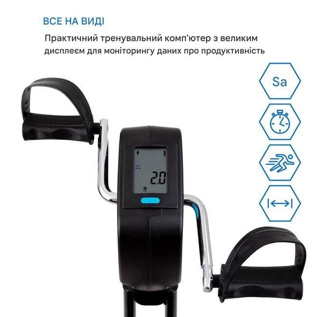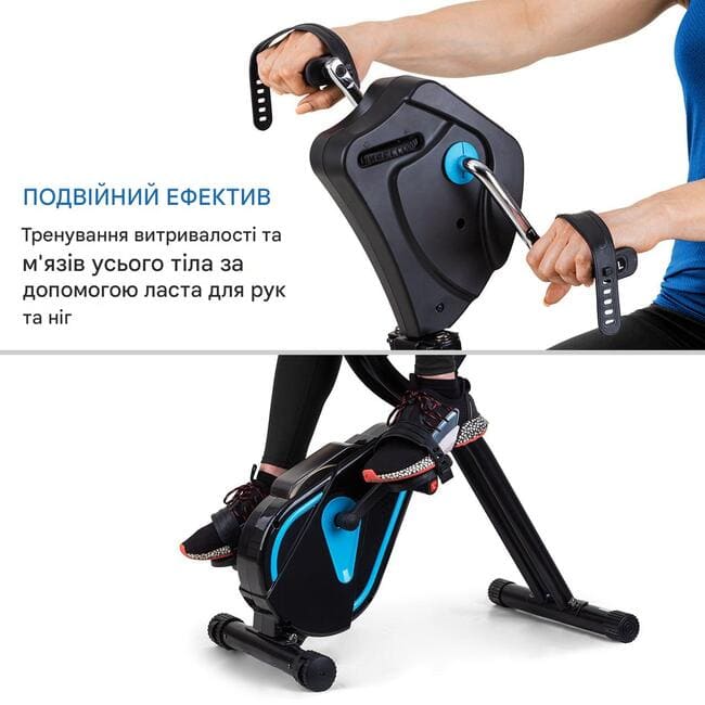 - Тренування для всього тіла: кардіо-велосипед із вбудованим ручним велосипедом для одночасного тренування рук і ніг
